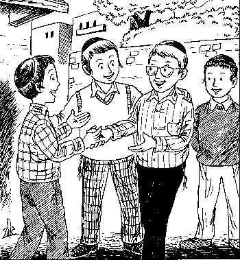 He ends: "Welcome every person with a cheerful face." Show everyone you meet that you are happy to see them. Speak to them in a nice and friendly way. The Torah considers this the best gift you can give another person. Everyone knows how scary it is to be a new person in a school. Think of how good you would feel if someone smiled t you and said "hello", when you were uncomfortable. Even when someone is not new, but feels a little sad, greet him in a cheerful way. It may chase away the sadness.