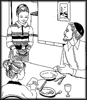 After a meal, a person should wash his hands up to the second joint of his fingers. This is done right before saying the Birchas Hamazon. This water should be poured from one container with another container underneath, to catch the water which was poured on his hands. This water should be emptied in a proper place. This is because the water has become "tomay", and a person should be careful that it does not touch anything. All types of water may be used. Wine should not be used because of its importance.