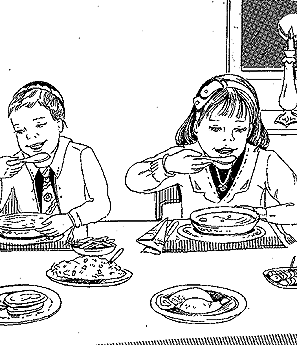 EATING OF SOUP AND MEAT