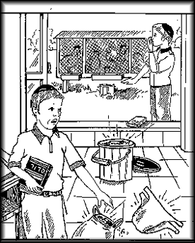 It is written in Devarim that when a person is saying "a holy thing, the place should be clean." For that reason, we show respect to Hashem, by saying brochos in a place that is clean. When the Rabbis say "clean", they mean that he is four amos or eight feet away from anything dirty that smells. If there are dirty diapers or garbage that is covered and cannot be smelled, then Tefilos may be said.