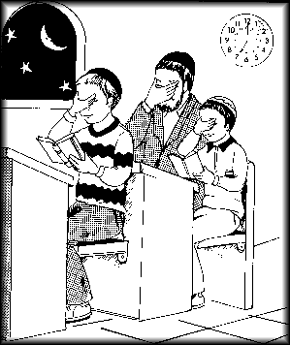 The evening prayers is said when three small stars can be seen in the evening. It is best to daven with a minyan at night. He should not begin eating 30 minutes before davening Maariv. Maariv cannot be davened earlier than an hour and 15 minutes before sunset. If a person is davening with a minyan, they may daven before the three stars come out, and later say the entire Shema over again. If a person comes late to the minyan and they have already started Shemoneh Esrei, he should join in and then afterwards say the Shema with its brochos.