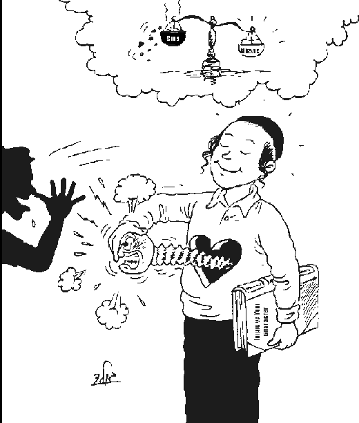 A mean bully is making fun of this boy, but he is controlling his desire to answer back. How can he do that? He knows that by remaining silent he is increasing his own store of Mitzvos.
