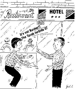 Imagine if you saw a friend going into a non-kosher restaurant. If you told him, "Don't eat there -- the food isn't kosher!" would he still eat there? Of course not! But somehow, when you tell someone that he's speaking lashon hara, he'll often find an excuse to keep on speaking. People don't realize that speaking Loshon Hora is just as wrong as eating food that is not kosher!