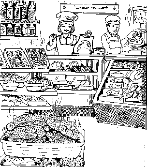 Friday morning, the family wakes up early so there will be enough time to get ready for Shabbos Ha-Malkah, the Shabbos Queen. We want to honor the Shabbos and make everything beautiful when Shabbos begins. Let's buy those foods which take a long time to make, on Thursday. It's a good idea to buy all the other food early Friday morning, so everything will be ready in time for Shabbos - especially in the winter when the days are short! As we buy things we should say, "This is lichvod Shabbos ( in honor of Shabbos)."