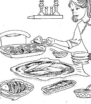 It is a custom to eat fish at the Shabbos meals. One reason for this is that just as fish can't survive without water, so the Jews can't survive without Torah, which is compared to water. Many Jews have more time to study Torah on Shabbos. Eating fish also reminds us of the Livyoson, the great fish we will enjoy in Olam Haba, the time which will be like a Shabbos that lasts forever.